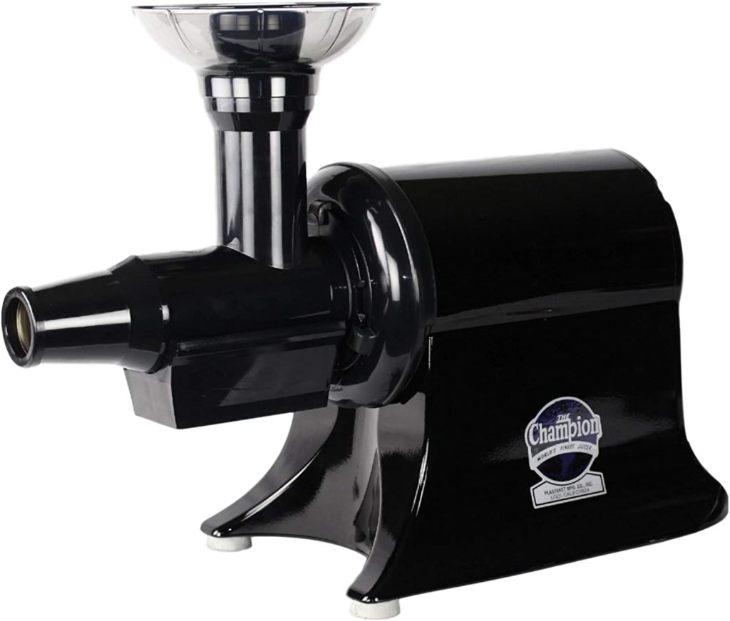 Champion classic 2000 is an excellent juicer for juicing just about fruit, vegetables, or leafy green. This commercial-style juicer features single auger technology that slowly presses out more juice than standard centrifugal juicers.