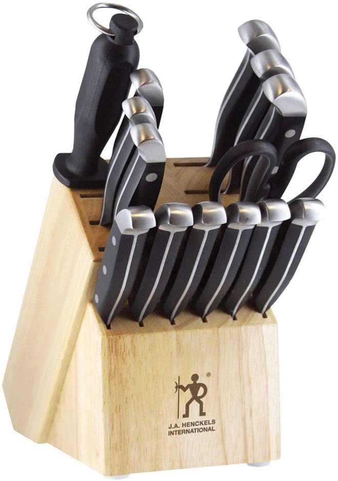 Honestly, J. A Henckels International Statement Knife set is all you will ever need in your kitchen when it comes to knives. It has every type of knife you will need, down to bread knives. So you don’t have to shop for different knives separately as you have them all in one set!