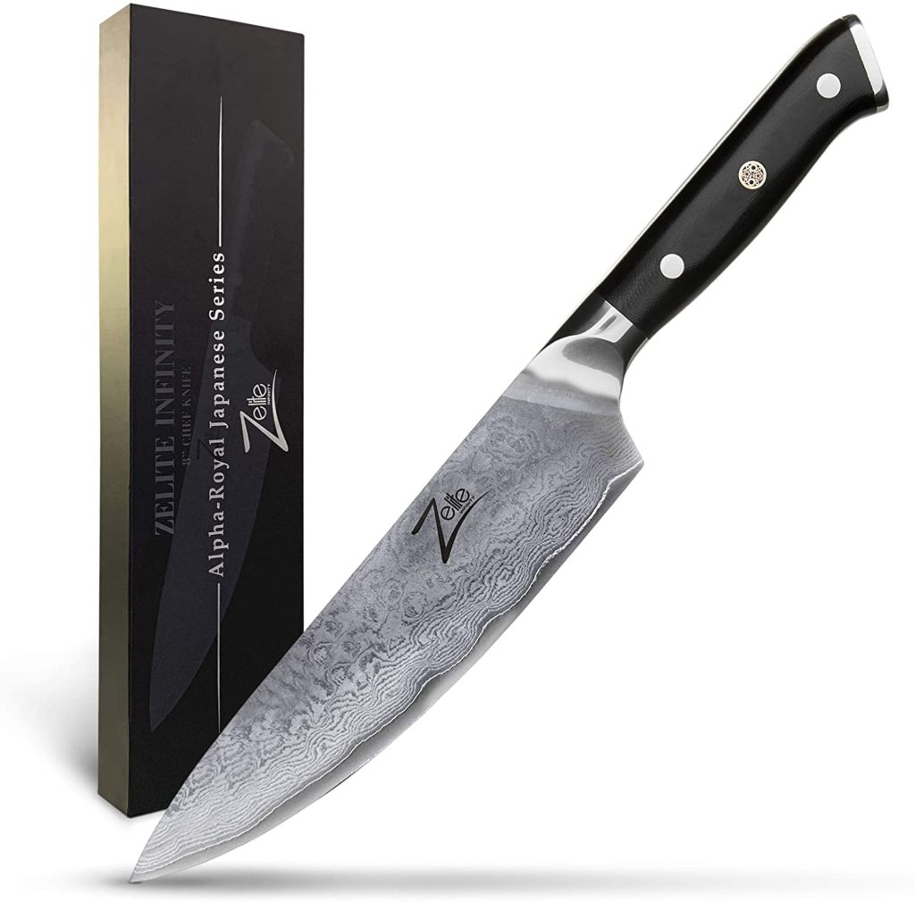 The Zelite Infinity chef’s knife is also good for your kitchen aesthetics, as it has a Damascus pattern design that beautifies your kitchen.