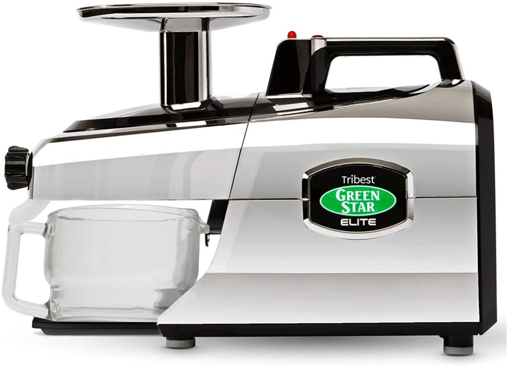 The Tribest GSE-5050 Greenstar Elite juicer is made from polycarbonate, very portable, and comes in a really unique design. With jumbo twin gears made of stainless steel and are specially patented with bio-ceramic magnetic technology, the juicer is designed in such a way that it breaks down ingredients just like human teeth. It has three processes portion for slicing, cutting, and crushing.